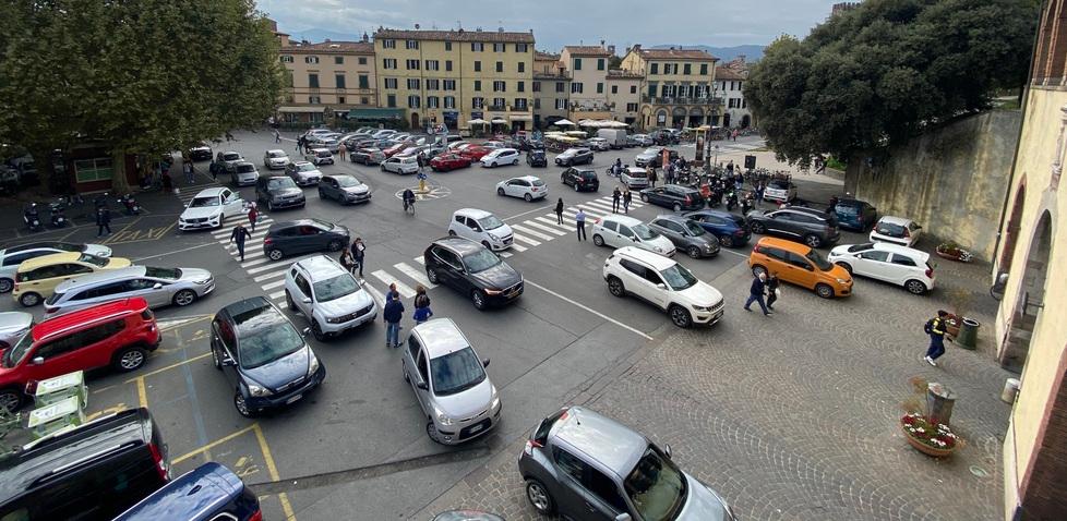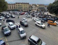 Lucca. Pulire da erbaccie marciapiedi in piazza Sa...