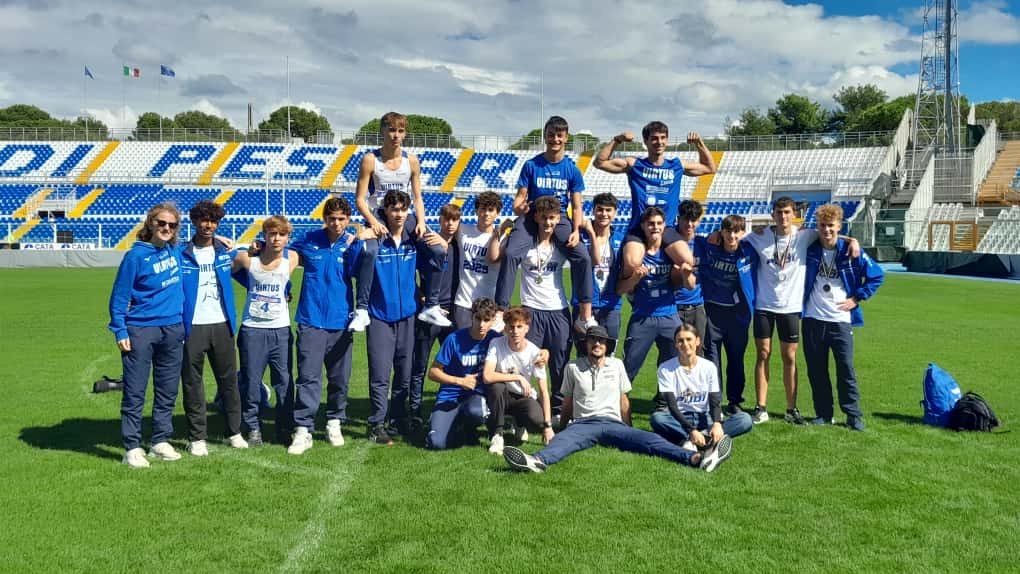 Si chiude con un quinto posto l’avventura degli Allievi dell’Atletica Virtus Lucca impegnati nel fine settimana a Pescara nella finale A Argento del Campionato di società. Una due giorni intensa e carica di aspettative che, al netto di un buon risultato finale, lascia qualche rimpianto per un posto sul podio che avrebbe potuto essere conquistato - dato il valore della squadra - e che è invece sfumato davvero per poco. Sono stati 133 i punti complessivi della squadra accompagnata dal responsabile Mattia Paterni e dai tecnici Elena Landi, Irene Dalla Bartola, Massimiliano Santangelo, Luigi Cosimini ed Emilio Filippi, con ben sette medaglie e nonostante qualche prestazione al di sotto delle premesse: oro per Alessandro Santangelo che taglia per primo in solitaria il traguardo dei 3000 metri e per Braian Doga nel giavellotto; bella doppietta di Alessandro Vanni sul podio nell’alto, dove strappa l’argento con la misura di 1.85, e nei 110 ostacoli dove conquista il bronzo; bel secondo posto di Edoardo Cosimini nel disco con 43.87 e bronzo per Diego Fornaciari nel peso e per Davide Ricci, terzo nei 400 metri e protagonista anche dei 200 dove si piazza al sesto posto. Quinto nel martello Luca Cantoni e sesto posto per: Braian Doga nell’asta, Gioele Ciomei nei 2000 siepi e Federico Pellegrini nei 400 ostacoli. Lorenzo Castrogiovanni conquista l’ottavo posto nel salto triplo e il nono nel salto in lungo. Al numero nove anche Senal Kankanige nei 100 metri e Leonardo Santangelo nei 1500. Undicesima posizione poi per Giulio Guccione negli 800 metri e per la staffetta 4x400 composta da Giovanni De Gaspari, Francesco Biagioni, Senal Kankanige e Davide Ricci. Peccato infine per l’errore che è costato la gara alla staffetta 4x100 composta da Senal Kankanige, Federico Pellegrini, Francesco Biagioni e Francesco Da Ponte A Quarto che, nell’ottica dell’intera stagione, meritava sicuramente un epilogo migliore.