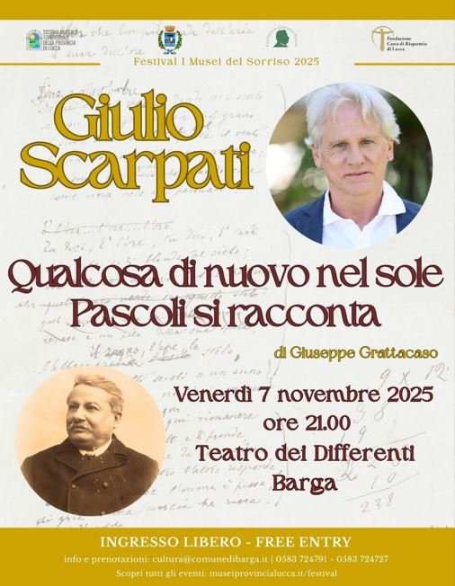 Lucca, 5 novembre 2025 – Giulio Scarpati è Giovanni Pascoli nello spettacolo che racconta gli ultimi giorni della sua vita. Va in scena ai Differenti di Barga, questo venerdì 7 novembre 2025 alle 21 a ingresso libero, nel calendario del quarto festival “I Musei del Sorriso”, organizzato dal Sistema Museale Territoriale della Provincia di Lucca in collaborazione con Fondazione Toscana Spettacolo Onlus e con il sostegno della Fondazione Cassa di Risparmio di Lucca.