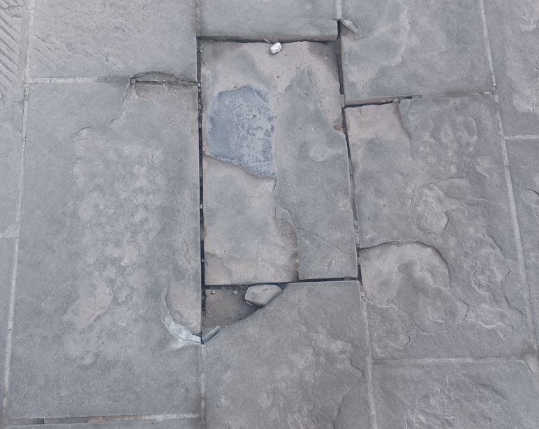 Va segnalato al Comune. Il Comune fa una collezione, da anni, di segnalazioni sui lastroni danneggiati. È una collezione molto preziosa, con migliaia di segnalazioni. Sembra che ne vogliano fare anche una mostra… Continuate a segnalare!