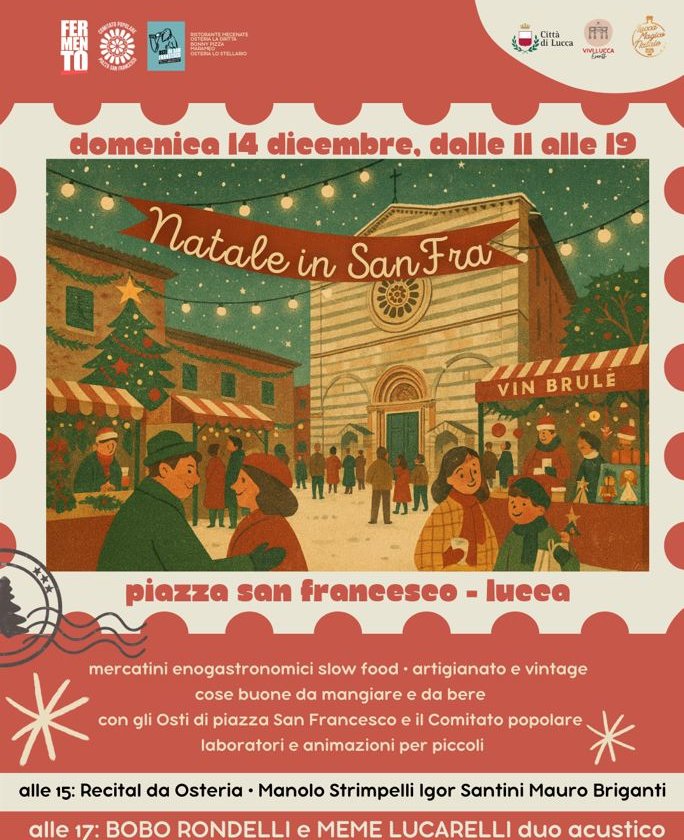 LUCCA, 13 dicembre 2025 - Domenica 14 dicembre piazza San Francesco si veste a festa con Natale in SanFra,