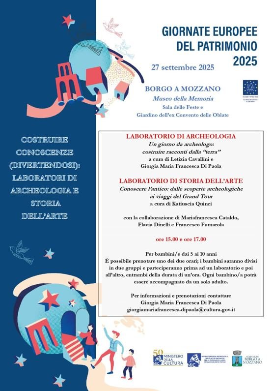 BORGO A MOZZANO, 20 settembre 2025 - Una giornata dedicata alla scoperta della storia: sabato 27 settembre, a Borgo a Mozzano arrivano gli appuntamenti delle “Giornate europee del patrimonio”. Promosso dal Ministero della Cultura, dalla Soprintendenza delle Province di Lucca, Massa Carrara e Pistoia e dal Comune di Borgo a Mozzano, il pomeriggio si rivolge soprattutto ai bambini che potranno mettersi alla prova con il mestiere di archeologo e storico dell’arte.