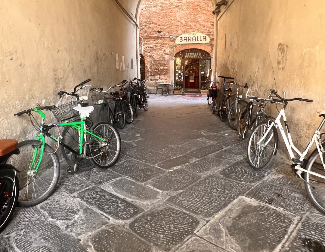 .... che ci sono nel centro di Lucca, gli ammucchiamenti di biciclette è uno. Prima di tutto andrebbero levate dai cortili di Palazzo Ducale.