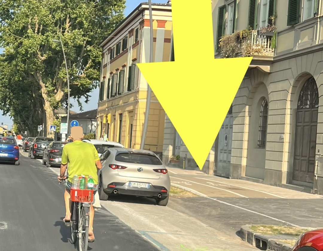 Solidarietà per il ciclista idealista. Sperare che l'italiano medio usi l'automobile in modo civile e responsabile è utopistico. Ancora più utopistico sperare che l'italiano medio riesca a leggere (e soprattutto a comprendere) il codice della strada. Caro ciclista idealista, dovrai rassegnarti al tizio parcheggiato sulla pista ciclabile, all'omino con le cuffie e via discorrendo… Dovrai anche considerati fortunato se nessun automobilista, sobrio ma ignaro delle regole, o distratto dal telefonino, o in preda ai fumi dell'alcol, ti travolgerà mentre pedali osservando coscienziosamente le disposizioni del codice. È l'Italia, e Lucca si trova in Italia, per l'appunto…