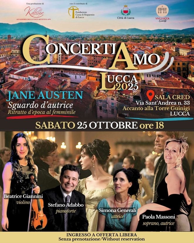 Dopo lo straordinario primo evento dedicato a Pasolini, nel quale gli impeccabili e istrionici musicisti Fabrizio Mocata, al pianoforte, e Michele Staino, al contrabbasso, insieme agli interventi dello scrittore Massimo Triolo e alle performance poetiche e musicali dell’autrice e soprano Paola Massoni, hanno fatto percorrere davvero nel pubblico grandi e intense emozioni con il loro originale ritratto pasoliniano, il Festival ConcertiAmoLucca 2025 torna il 25 Ottobre alle ore 18 con un incontro tutto dedicato al personaggio di JANE AUSTEN.