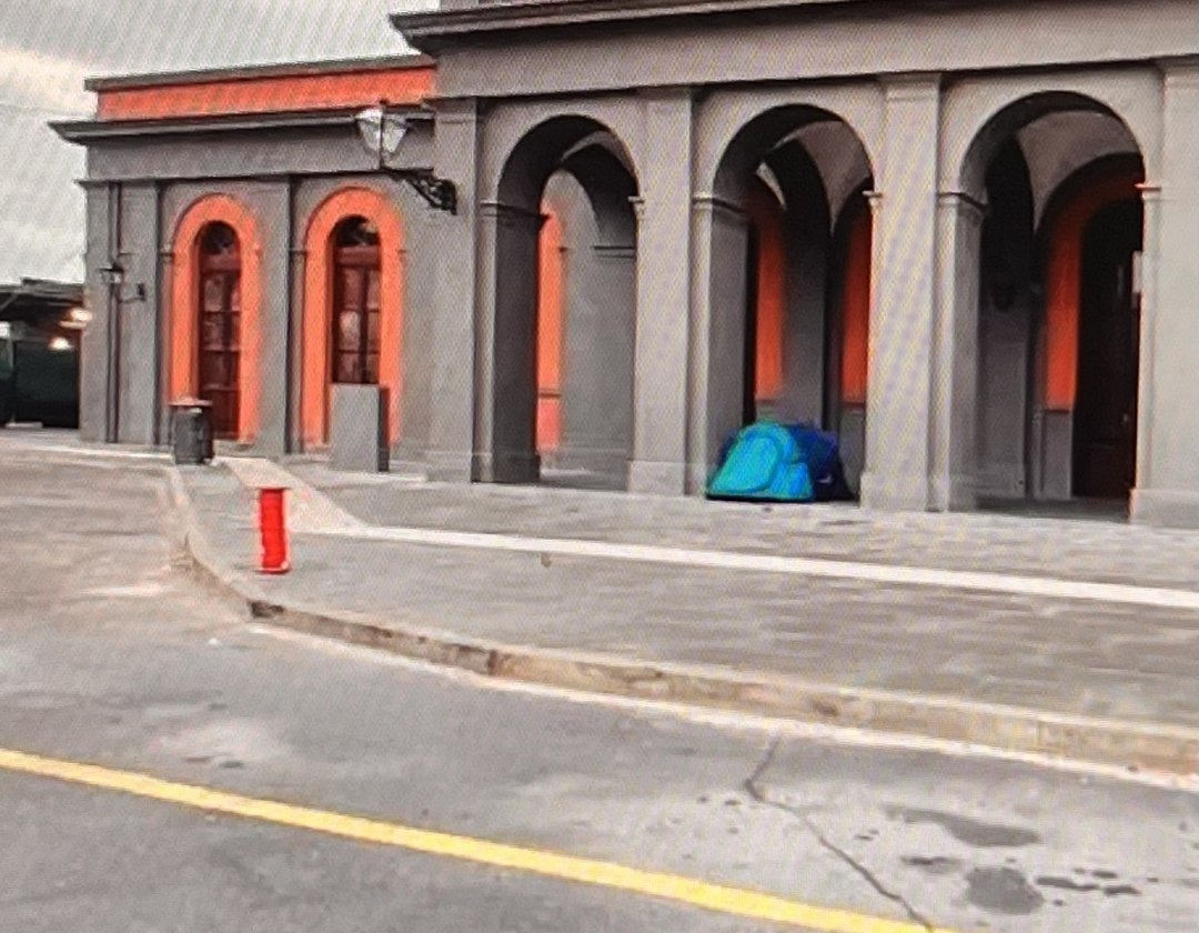 Con la tenda accampato sotto al loggiato della Stazione.