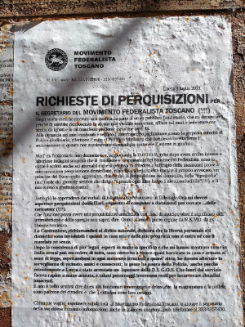 siccome la foto e' bassa risoluzione mi sono cimentato a riportarne alcune frasi, si capisce che e' il fantomatico Movimento Federalista Toscano ( ?) che appesta sempre di volantini appiccicati a colla sui muri in citta' questo vicino all'istituto Giorgi e dice queste parole piu' o meno ( ma e' pieno da ogni luogo del centro di Lucca con varie affermazioni )