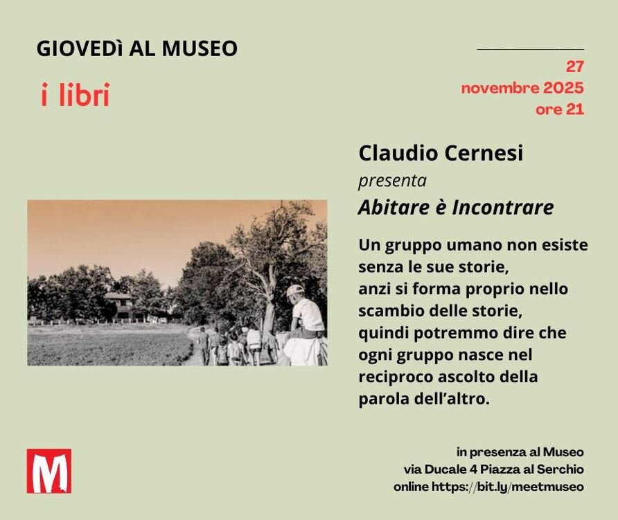 Un libro nato nel silenzio e nell’ascolto, che è predisposizione all’incontro con l’altro proprio nell’ambiente in cui si vive: Abitare è Incontrare di Claudio Cernesi viene presentato dall’autore in presenza alla Sala della Narrazione del Museo Italiano dell’Immaginario Folklorico il 27 novembre alle ore 21 per i Giovedì al Museo.