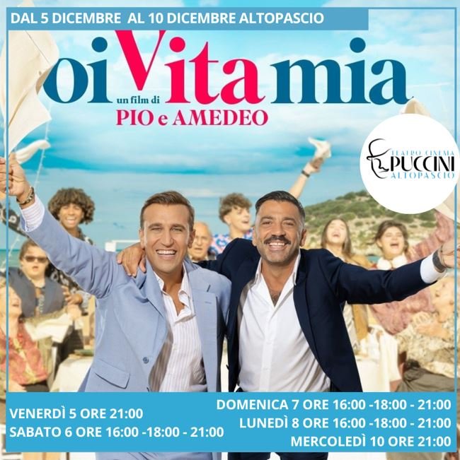 la programmazione del cinema al Teatro Puccini di Altopascio (via Regina Margherita 17), dal 5 al 10 dicembre.