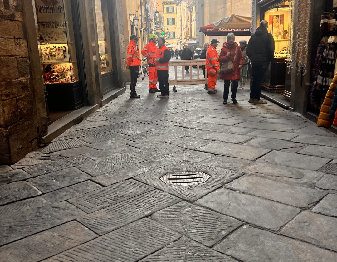 Non so chi abbia gestito la situazione. Ma è alquanto fantozziana. Invece di circoscrivere il problema dell’olio sferzata per terra, si è dilagato fino quasi a via San Paolino. Lasciar camminare i mezzi nelle zone limitrofe ha solamente fatto sì che tutto non rimanesse circoscritto. Ora il problema è molto più grande… Si scivola sui tombini come sulle pietre più lisce. Gli interventi messi in campo sono insufficienti e inadeguati. Oltre a questo ci sono i negozianti che si lamentano, visto che l’olio misto a sabbia viene portato dentro le attività… Lì dentro che pulisce ora?