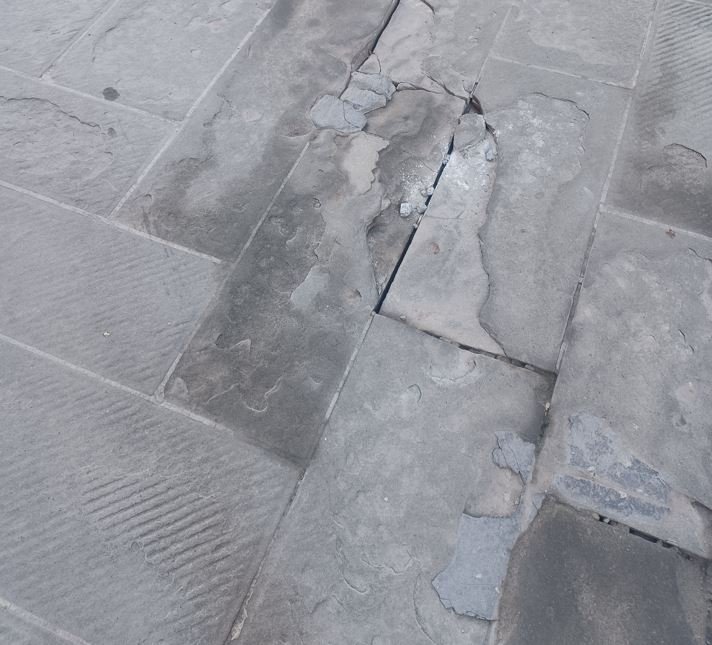 Pietre rotte e sconnesse,anche vicino la Madonna dello Stellario a Lucca.
