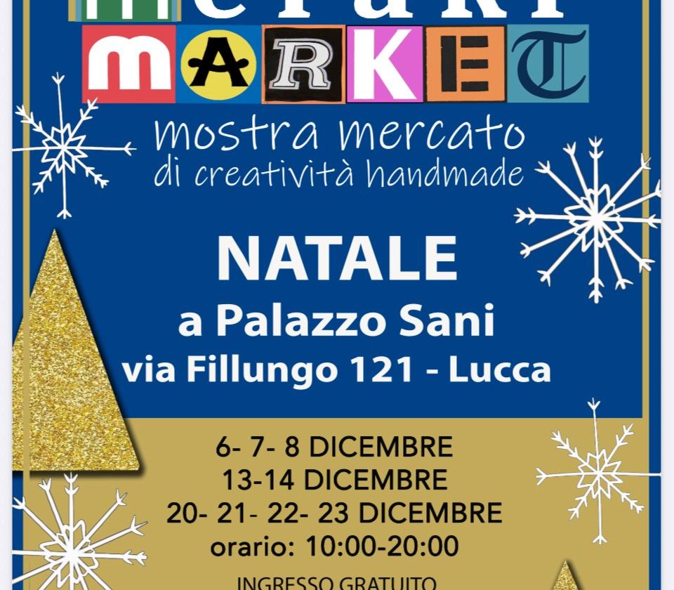 Sabato 20, domenica 21, lunedì 22 e martedì 23 dicembre dalle 10 alle 20, a palazzo Sani si potrà visitare il Meraki Market incontrare gli artisti e creativi "merakiani", con le loro creazioni: dipinti, lavori in pelle, ecopprinting, lavori di cucito e tricot, gioielli in varie tecniche, lavori in legno, riciclo artistico.