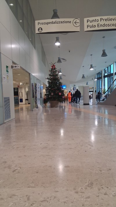 La entrata - L'Entrance Hall . di questo Ospedale Copia Monoblocco a Pistoia nonostante sia uguale a quello di Lucca ha un albero di Natale enorme, la TV sempre accesa per i visitatori, arredi migliori e piu' sedie per riposare in attesa..