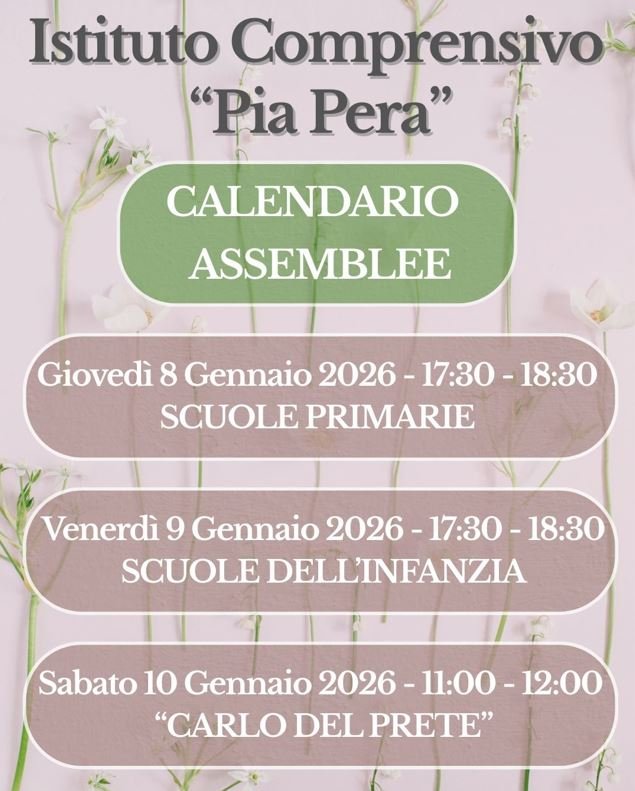 Il periodo delle iscrizioni rappresenta un’opportunità importante per conoscere da vicino le nostre scuole e i progetti che le rendono vive e dinamiche. Per questo abbiamo organizzato una serie di assemblee informative alla presenza della Dirigente Scolastica, che illustrerà i percorsi educativi e sarà a disposizione per rispondere a tutte le vostre domande.