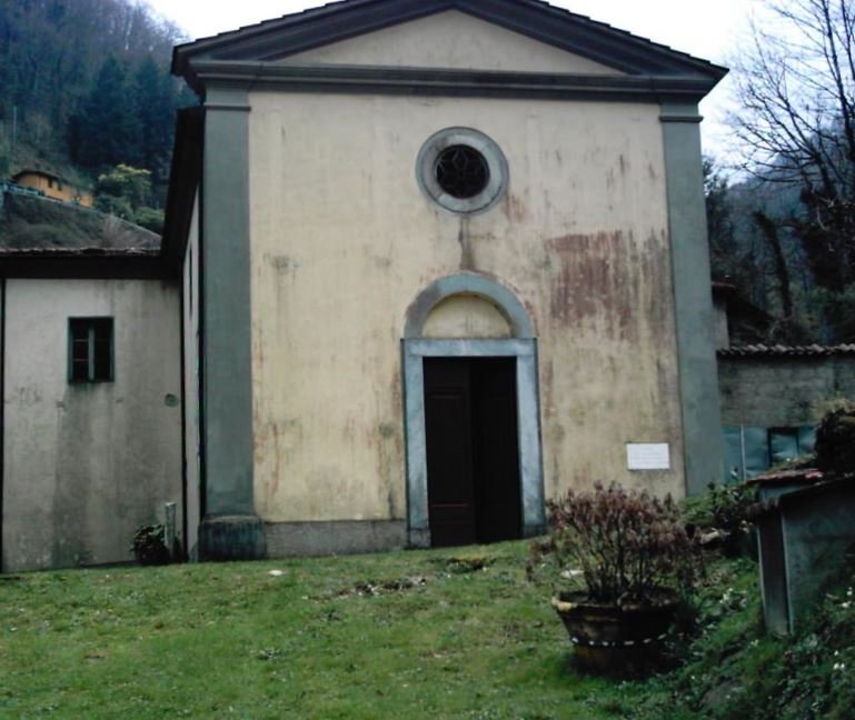 esterno della chiesa, lato mulattiera. Al magazzino di Mulina facevano i