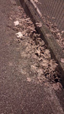 ieri mancato poco che volassi a terra e andassi magari al pronto soccorso con la gamba rotta o peggio a scivolare sulle foglie del parcheggio viscido al parcheggio dove avevo messo auto per recarmi trovare un parente