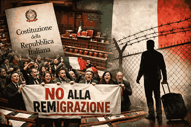 Il punto di svolta è arrivato ieri, quando questa idea ha tentato di ottenere una legittimazione simbolica all’interno delle istituzioni. Alla Camera dei Deputati era stata annunciata una conferenza stampa per presentare una raccolta firme per una legge di iniziativa popolare sulla remigrazione, promossa da ambienti dell’estrema destra con il sostegno di un esponente della Lega. La conferenza però non si è mai svolta: le opposizioni hanno occupato la sala stampa, la Presidenza della Camera ha sospeso tutte le conferenze per motivi di ordine pubblico e l’evento è stato annullato. Un fatto politico rilevante, perché segna un confine netto tra il diritto di proposta e l’uso degli spazi istituzionali per idee considerate incompatibili con i valori repubblicani.