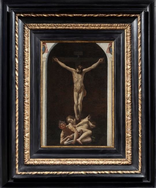 Dopo Il Ritratto della poetessa Teresa Bandettini di Angelica Kaufmann - ha infatti scritto Marsili - una seconda opera di una pittrice arricchisce la collezione della Fondazione Cassa di Risparmio di Lucca. Si tratta del Cristo crocifisso che trionfa sulla Morte, il Male e il Peccato di Giustiniana Guidotti Borghese, figlia di Paolo Guidotti, il Cavalier Borghese. Giovanni Baglione nelle sue Le vite del 1642 la descrive come una donna educata all’indipendenza e fin da molto giovane introdotta dal padre alla pittura e agli studi umanistici e al padre profondamente legata. Il quadro le fu commissionato dal cardinale Giovanni Francesco Guido di Bagno e si ispira alla composizione dallo stesso titolo dipinta nel 1621 dal padre per volontà di Maffeo Barberini, futuro Papa Urbano VIII, oggi conservata al Minneapolis Institute of Arts. Sappiamo poco di Giustiniana Guidotti.